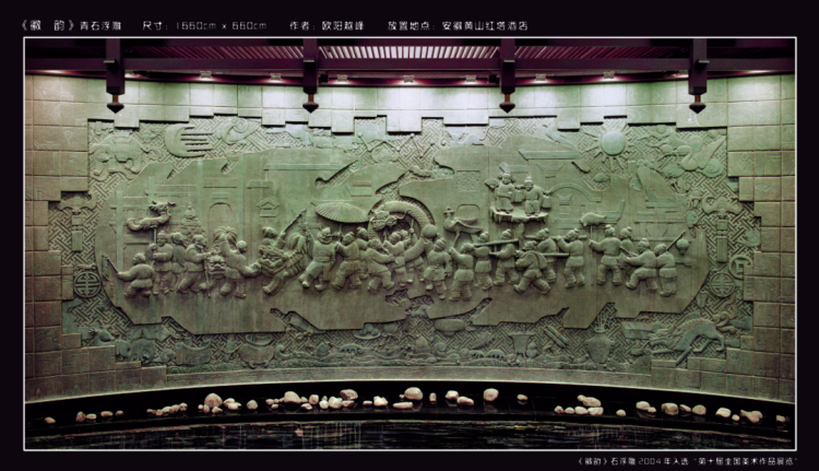 这件作品是从皖南传统装饰雕刻中走出来的,它结合了传统皖南装饰雕刻的表现手法以及现代浮雕壁画的表现形式,是一件具有徽州本土文化特色的现代作品。——欧阳越峰