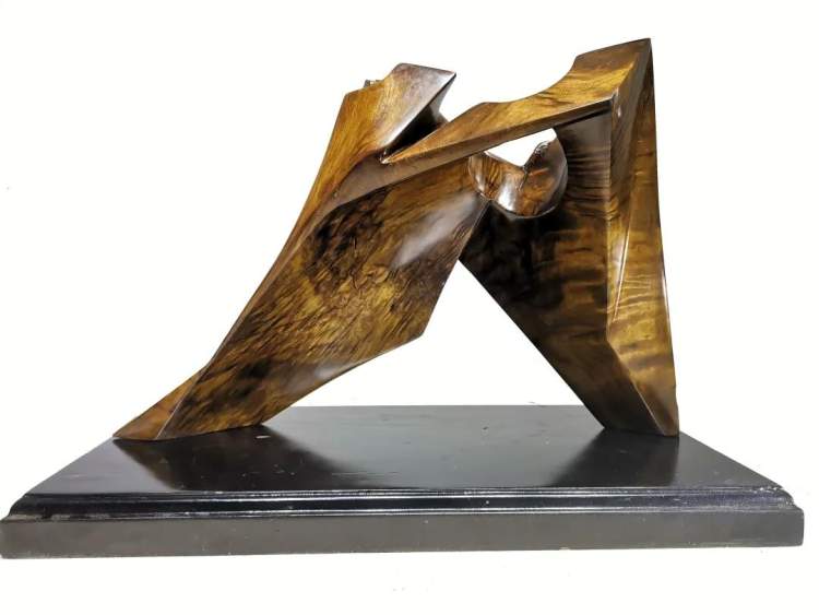 这个抽象雕塑研修班成了牟利忠木雕生涯的一个“分水岭”。从此之后,他的木雕技能不再只雕刻出逼真的花草动物山水与人,也用于呈现抽象作品。