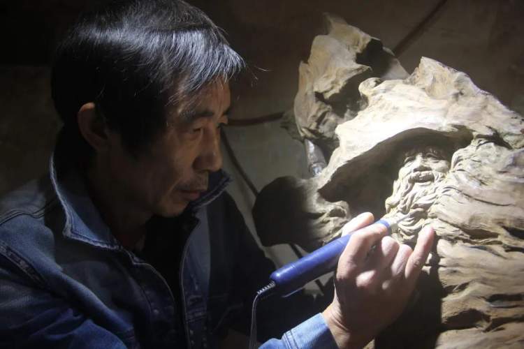 不过,正式从事木雕这一行还是在1998年,之前,对于牟利忠来说,木雕还只是个爱好,这一年,牟利忠正式离开卷烟厂,开始了职业木雕师的生涯。
