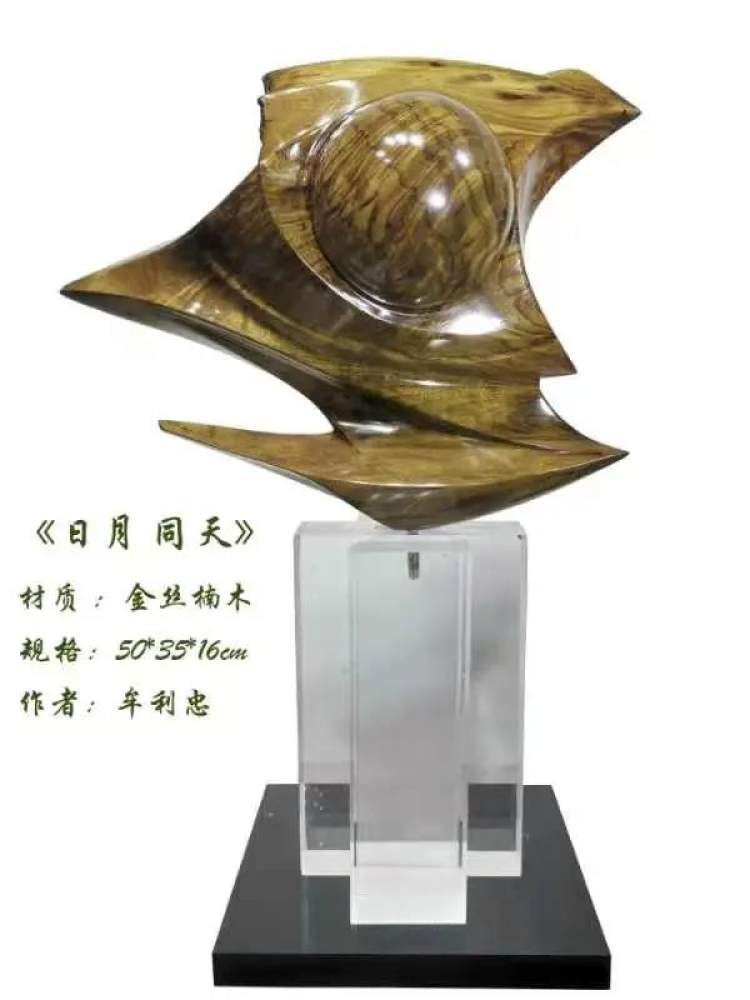 《日月同天》采用了异质同构的手法,用到了木料和有机玻璃两种材料,表达了山川异域、日月同天、追求和谐的美好向往。——牟利忠