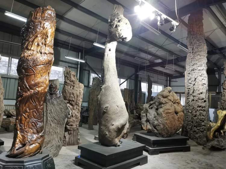 这4件雕塑作品的另一个特点是,用材都是珍贵的金丝楠木。