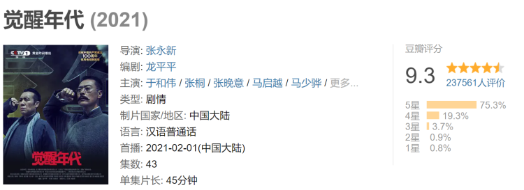 《觉醒年代》播出后,在当代90后群体中掀起热议,不仅在网络上的评分高达9.3分,众多90后甚至95后,也通过弹幕表达对革命先烈和这段历史的敬仰。