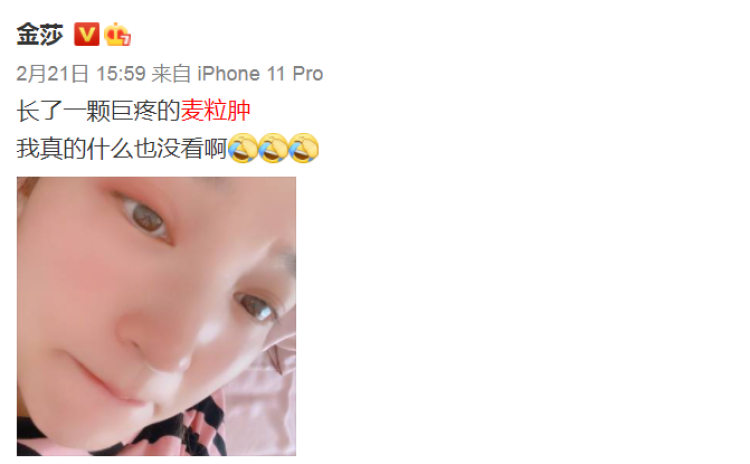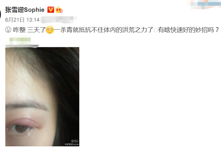 新生代小花刘人语、女星张雪迎苦于麦粒肿困扰,接连发微博求助↓