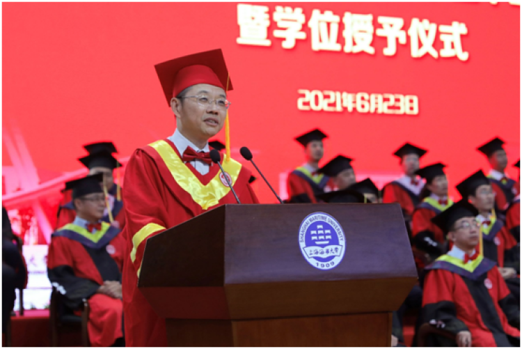 上海海事大学校长陆靖寄语毕业生,闯出一番天地、干出一番事业!“你们是可以大有作为的,因为你们将亲身参与、亲眼见证‘两个一百年’奋斗目标的实现。自古英雄出少年。希望大家始终坚守自己的初心梦想,勇敢地投入国家和民族的奋斗大潮中。”