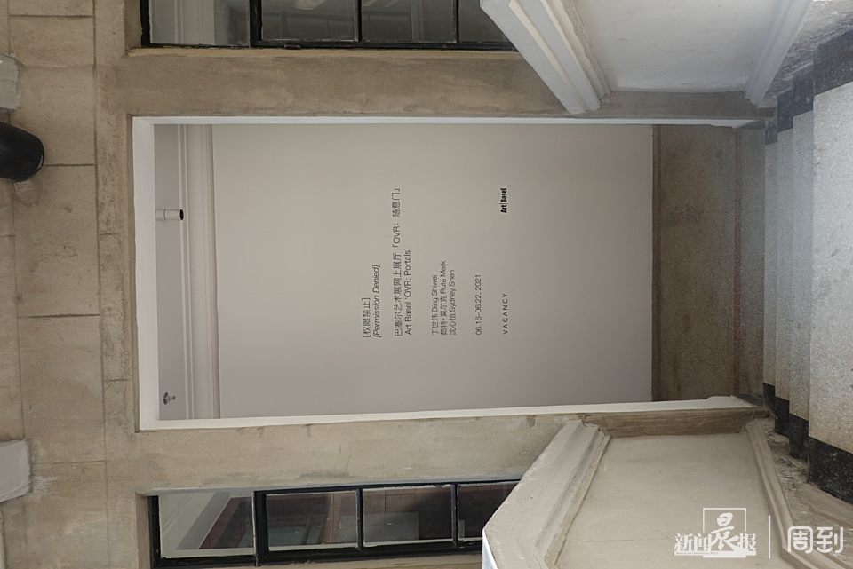 通过主楼和副楼之间的廊道,你可以接着前往“权限禁止”装置展。作为巴塞尔艺术展网上展厅“OVR:随意门”的一部分,它同时在线下和