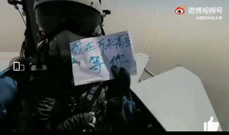 视频中,已毕业的校友,手持“强军兴国”“我在万米高空等你”等卡片,为母校国防科技大学打call!