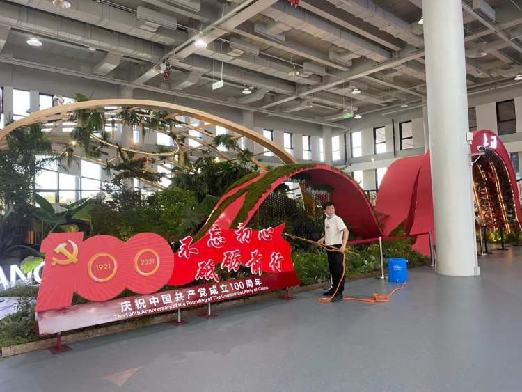 近日,花博会复兴馆、花艺馆、复兴馆前广场的花海等处完成又一次换展,这是花博会7月2日闭幕前的最后一次较大规模换展,各参展单位纷纷拿出了“压箱底”的珍奇展品。红色元素是此次换展的主色调,复兴馆馆前的花海已经被一串红代替,迎接即将到来的中国共产党百年诞辰。