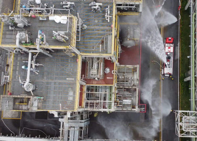 化工区应急响应中心接报后,立即启动园区突发事件应急预案,迅速成立现场指挥部,调集公安、消防、环保、医疗、市监等应急联动单位参与处置。
