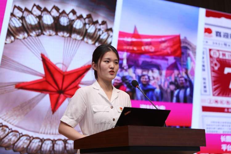 “我们团队设计了一百张海报长图,每天介绍一个上海红色革命文化旧址、遗址以及它背后的故事,以此讲好党史、讲好老党员的故事。今天我们讲述的是位于四川北路1999弄32号的太阳社旧址” 张轶然述职中说,在资料收集和海报设计的过程中,自己不仅提高了专业素养,也进一步提高了党性修养。