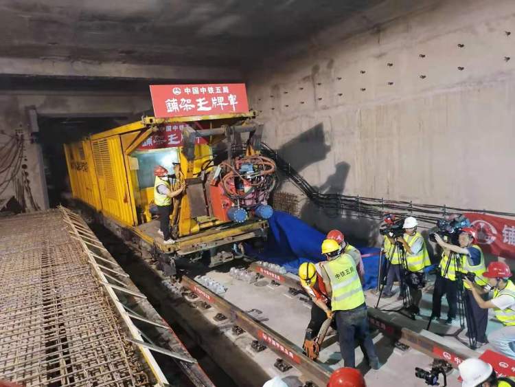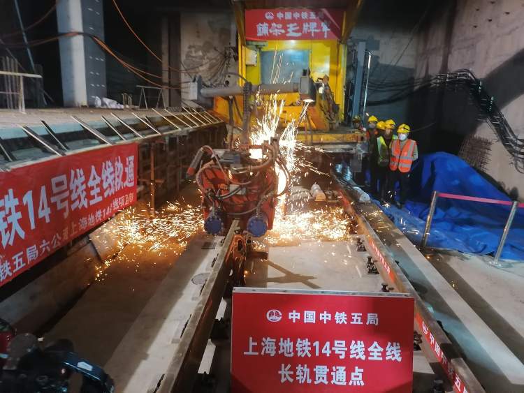今天下午,在建14号线静安寺车站的上行线处最后一对25米钢轨被顺利焊接连通,标志着14号线全线轨道顺利贯通,为下一步全线电通及开通初期运营奠定坚实基础。