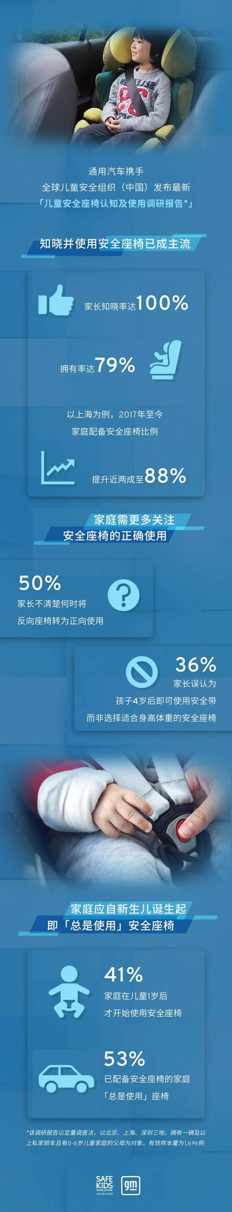 根据调研报告,首先,目前中国家长知晓并使用儿童安全座椅已成主流。数据显示,京沪深三地家长对儿童安全座椅的知晓率已达100%,拥有率达到79%。近年来社会各界对使用儿童安全座椅的持续宣导起到积极作用;以上海为例,自2017年以来,上海家庭中为儿童配备安全座椅的比例由70%上升至88%。