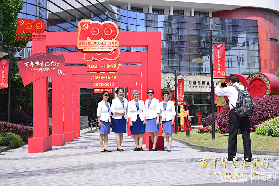 “百年华章汇前行”,“汇”既代表着海派时尚、活力蓬勃的徐汇城区,更代表着中国共产党强大的领导力、向心力和凝聚力。