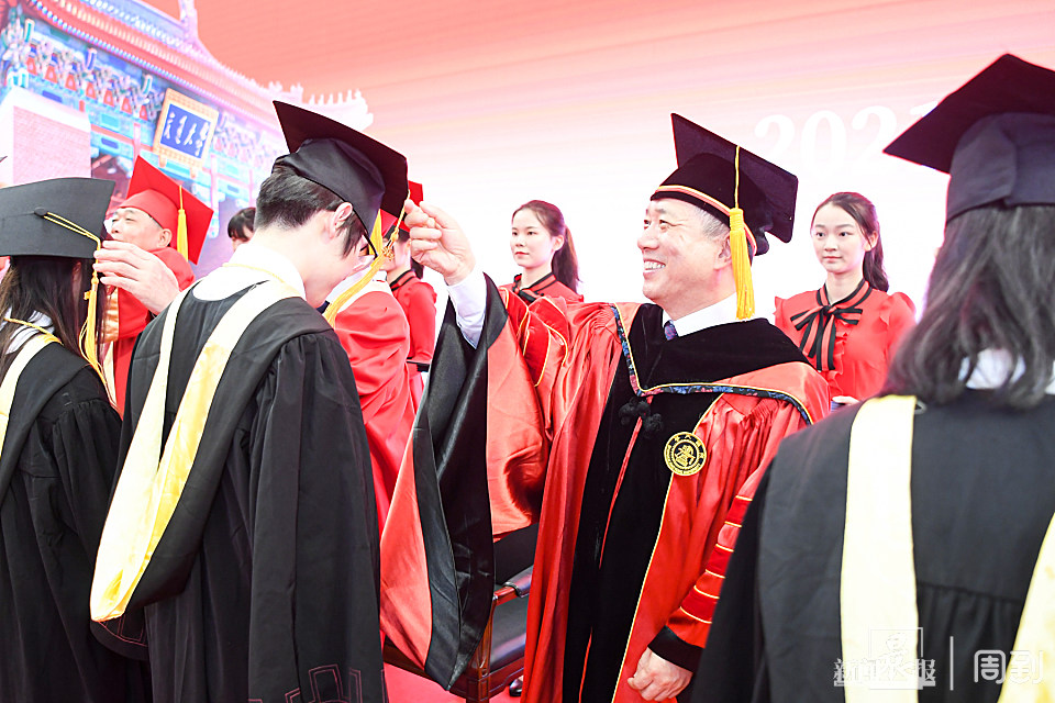 ■党委书记杨振斌等校领导为毕业生授予学位