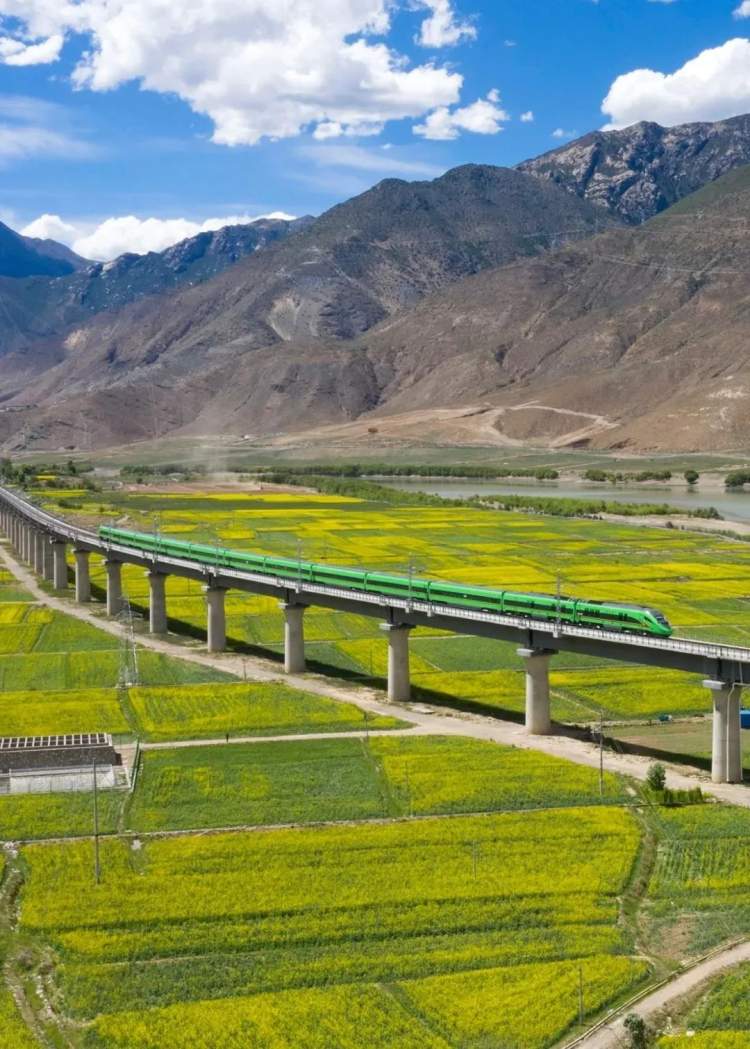 6月25日,“复兴号”高原内电双源动车组满载乘客,迎着高原灿烂的阳光,缓缓驶出了站台,标志着拉(萨)林(芝)铁路正式开通运营,拉萨至山南、林芝,最快1小时10分、3小时29分可达,西藏由此进入电气化铁路时代。
