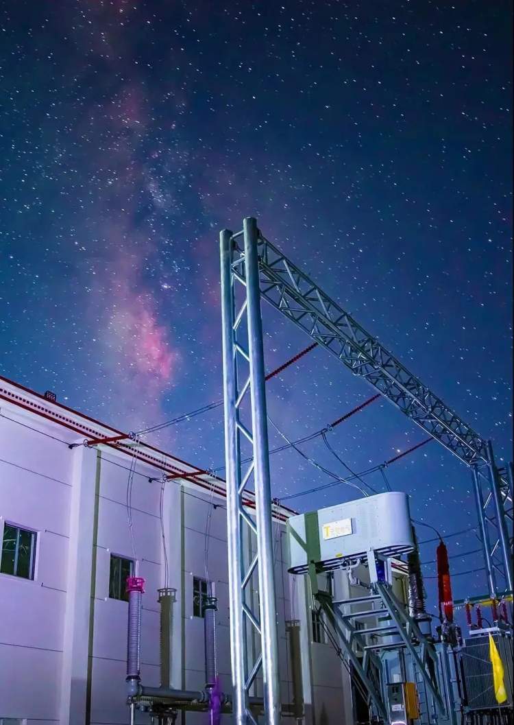 ▲夜空下的拉林铁路米林220kV牵引变电所