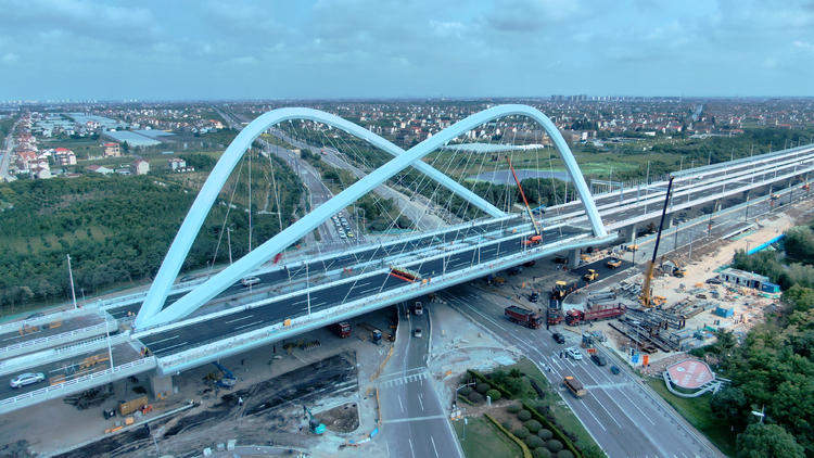 两港大道项目北段从开工至今,历时399天,克服了地下管线影响大、交通导改难度大、全线保通压力大等众多困难,顺利攻克了临港大道景观桥主线及拱肋合龙这一关键节点。
