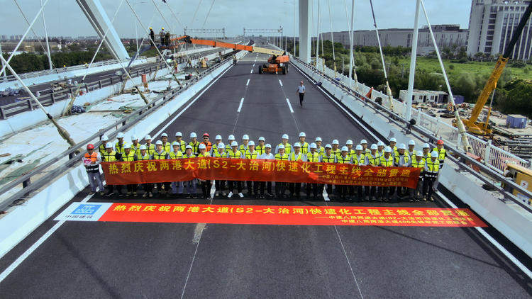 6月25日,随着两港大道(S2-大治河)快速化工程(以下简称“北段”)跨临港大道景观桥最后一段桥面沥青铺装完成,标志着项目跨线桥桥面铺装圆满收官,工程主线已全部贯通,为项目建成奠定了基础。