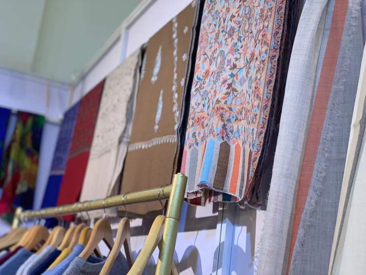 据现场工作人员介绍,一条200cm×70cm的Pashmina披肩需要1600根羊绒经线和17000根纬线在14000米的羊绒丝上精耕细作1800个小时。