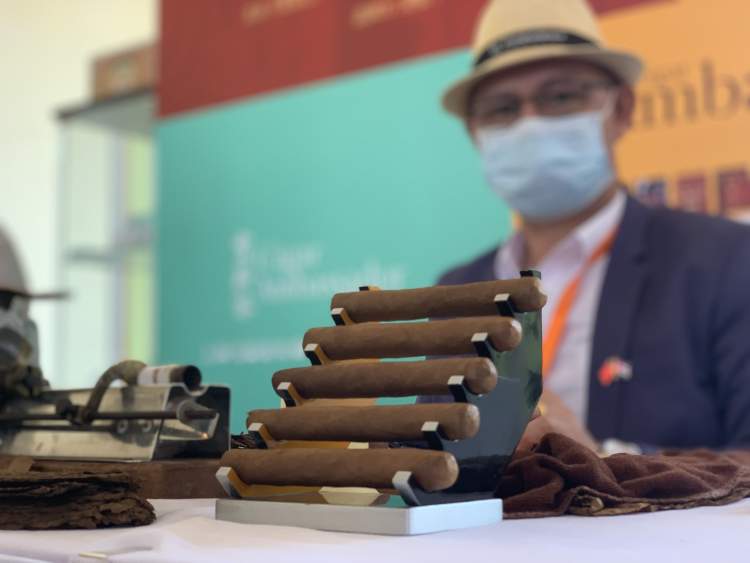 在雪茄客的展位前,来自古巴的9+级别的特级卷烟师拉萨罗现场呈现的雪茄卷制表演吸引了参观者们纷纷驻足。