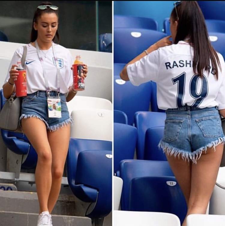 2018年俄罗斯世界杯的时候,露西亚还是英格兰队“太太团”的一员,在看台上为心爱的人呐喊助威,和拉什福德一起分享了他世界杯赛场首秀的快乐。