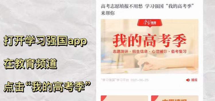 周到君发现,学习强国app在“我的高考季”专区推出了志愿填报测评服务。
