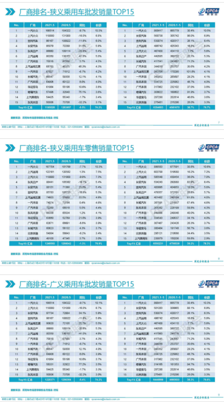 根据乘联会发布的《2021年5月份全国乘用车市场深度分析报告》显示,刚刚过去的五月,无论是广义乘用车批发零售销量还是狭义乘用车批发零售销量,一汽大众都位居榜首。这或许能够很好说明大众在华营销策略和品牌定位都相当精准。