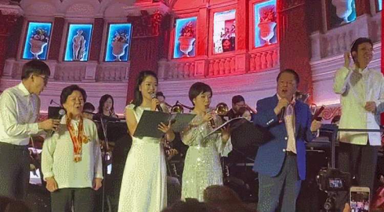 当晚7点,在环球港金色演艺大厅上演的音乐会,以《东方红》、《走进新时代》等市民耳熟能详的乐曲开场。