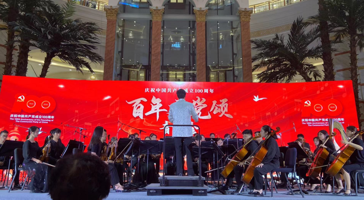 今年是中国共产党成立100周年,6月28日晚,在党的百年华诞之际,上海环球港携手华东师范大学音乐学院,共同举行“百年建党颂”音乐会,通过系列经典红歌演唱、管弦乐队演奏等精彩活动,为党的百年辉煌献上真挚祝福。