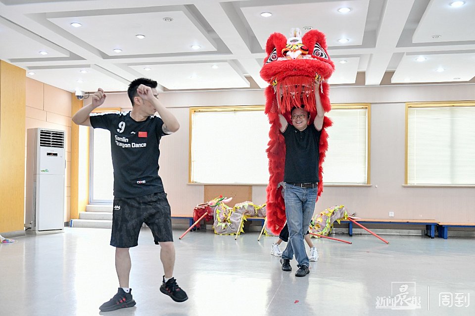 醒狮三拜、盘头绕狮、晃头摆尾……上海市工商外国语学校的体育馆内,一堂精彩且趣味十足的非遗课堂——龙狮文化体验,让市民学员近距离感受中国非遗文化的魅力。