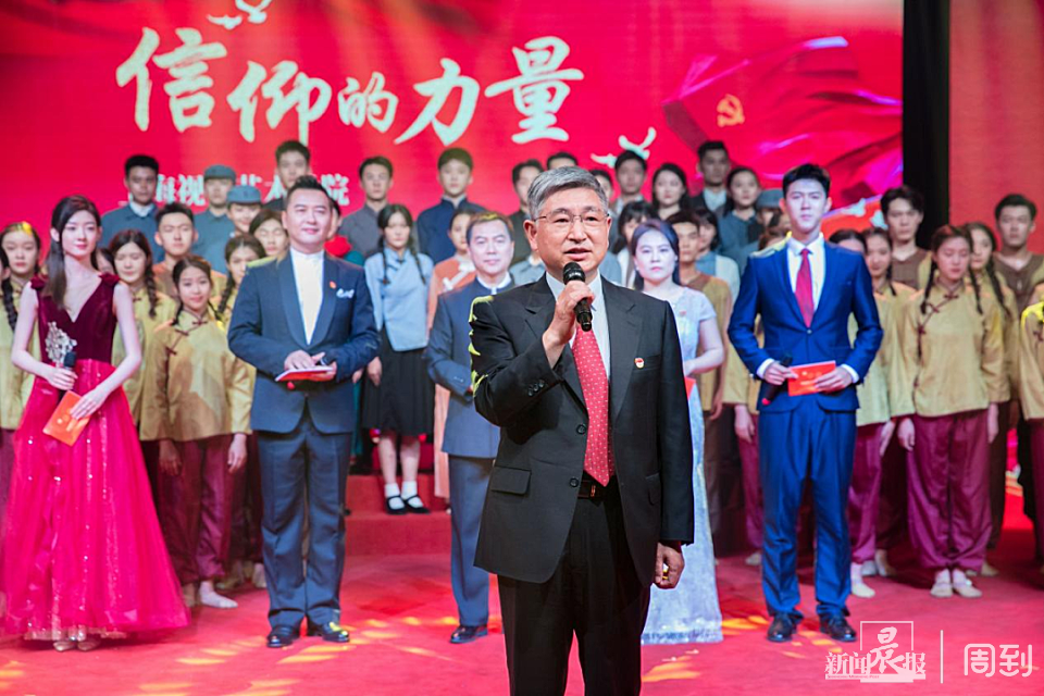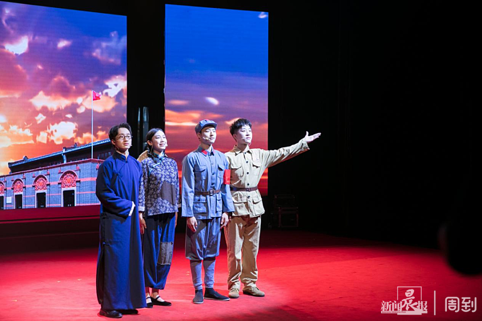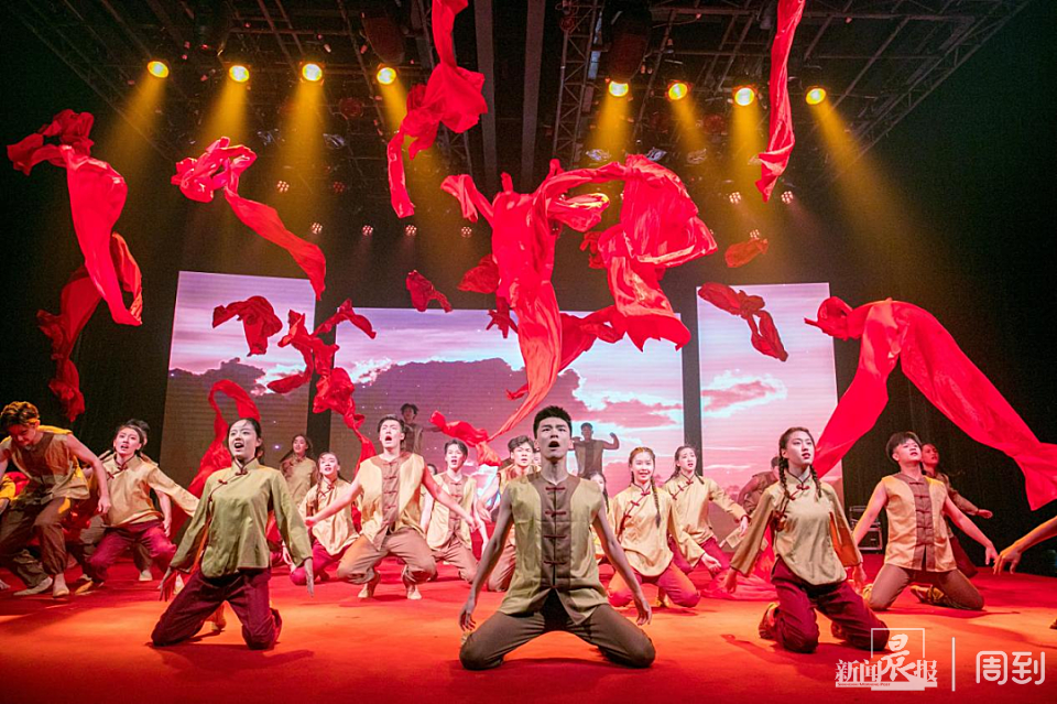 这是上海视觉艺术学院举办的“信仰的力量”庆祝中国共产党成立100周年文艺演出中的一幕。学生们用情景剧、诗歌朗诵等方式,表达爱国之心。