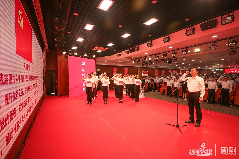 6月29日,在上海对外经贸大学举行的市教卫工作党委系统第三季“伟大工程”系列示范党课上,校长汪荣明带领新入党师生党员代表、现场党员师生重温入党誓词,铮铮誓言,久久回响,振奋人心。