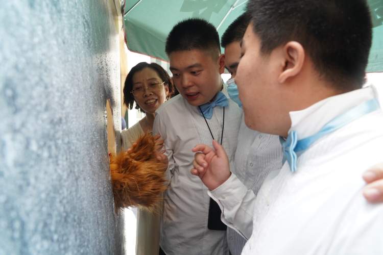 而在徐汇天平社区,为聋哑人提供就业机会的熊爪咖啡也一度是上海市民的爱心打卡点,墙洞背后柔软的熊掌,赋予咖啡别样的温度。当天墙洞和熊爪也被复刻到了活动现场。