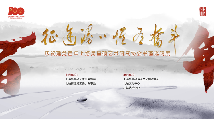 “致敬缶翁精神,传承昌硕文化”系列活动之“征途漫漫,惟有奋斗”——庆祝建党百年上海吴昌硕艺术研究协会书画邀请展,今天在吴昌硕海派艺术中心开幕。展览通过70幅书画和篆刻作品,回顾党的百年历史。