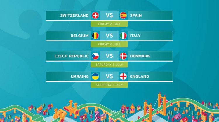 在即将到来的八强对阵中,欧洲杯即将上演四场重量级较量:分别是瑞士对阵西班牙、比利时迎战意大利、捷克对阵丹麦、英格兰迎战乌克兰。
