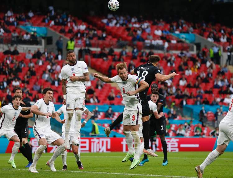 第85分钟,德国队后防线出现失误,卢克-肖抢断成功,刚刚上场的格拉利什禁区做球,凯恩俯身头球攻门,英格兰队再次破门。