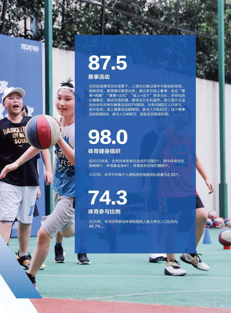 《2020年上海市全民健身发展报告》显示,上海全民健身发展指数(“300指数”)总分254.4分,健身环境、运动参与、体质健康三方面情况良好,继续处于“满意”区间。