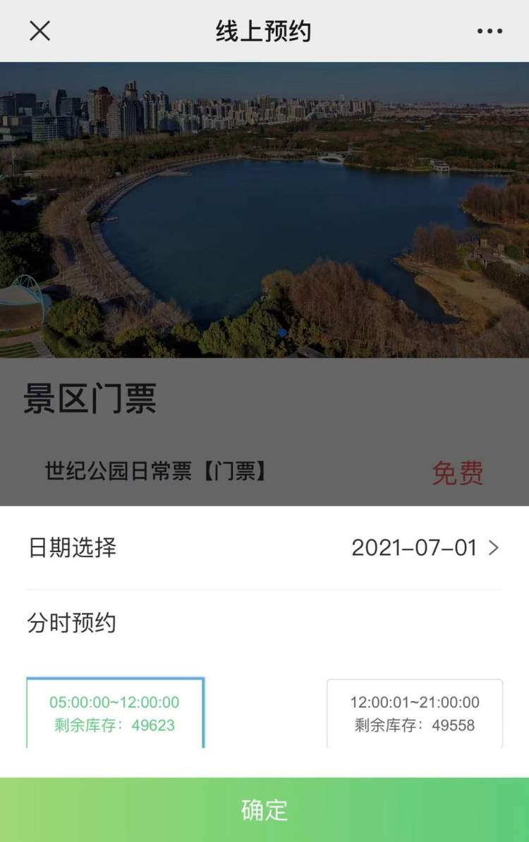 世纪公园将于7月1日实施免费开放,开放时间为每日5时至21时,日间开放范围为全园140.3万平方米,夜间将封闭北山、西山、南山、樱花岛、鸟岛等密林和水域,以保障市民游客人身安全。