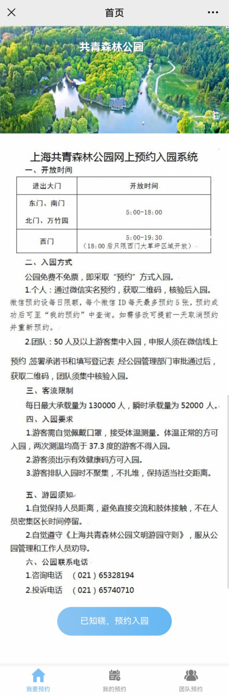 2.(知悉相关须知后点击“已知晓,预约入园”)