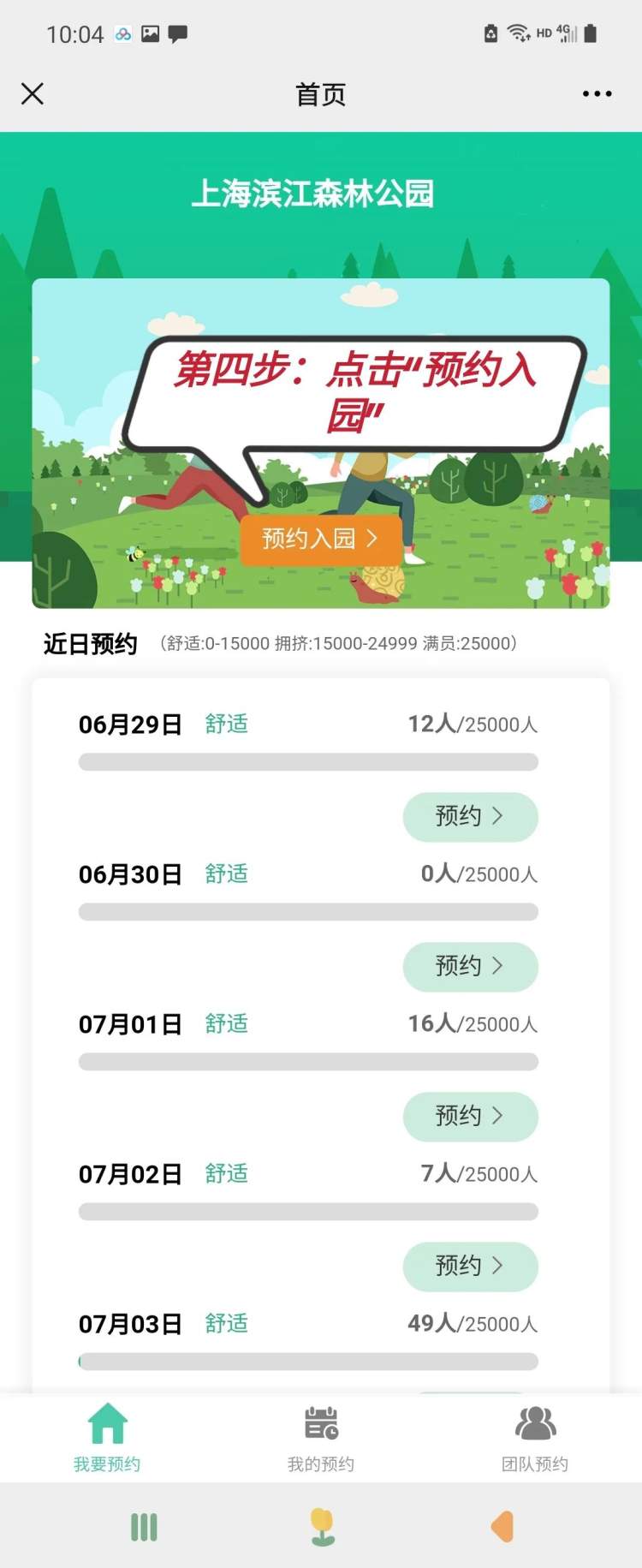 滨江森林公园预约步骤
