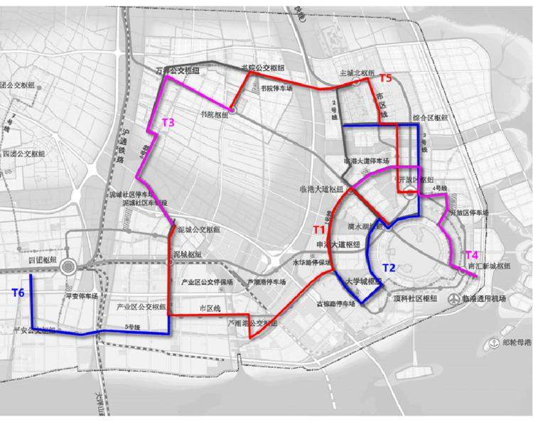 临港中运量交通规划共6线成网。5月底,T2线(滴水湖站~水华路站段)也开始进行选线专项规划公示。