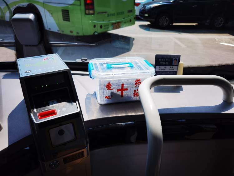 细心的小伙伴可能已经察觉到了,在一进车门的位置新增了一个装有口罩、人丹、创口贴等应急小物品的药箱,方便乘客随手取用。