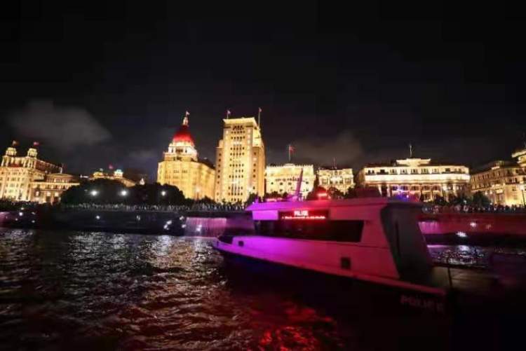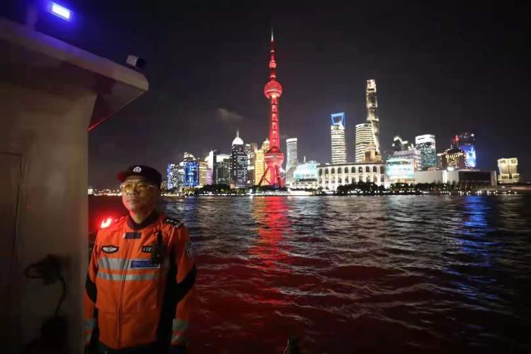 黄浦江上,为做好此次光影秀安保工作,边防港航分局在北外滩滨江绿地段、黄浦江外滩核心水域以及各轮渡站等方面投入警力,做好乘坐游览船大客流的疏导工作。期间,在外滩陈毅广场附近核心水域,上海急救中心医护人员随一艘公安艇驻守,随时应对游客落水等突发状况,另安排两艘公安艇从北外滩水域到十六铺码头水域之间来回巡逻,维护好光影秀期间外滩水域治安秩序。此外,边防港航分局在共计36条浦江游览船上均配置民警等安保力量,随时做好各类水上突发案事件的处置。