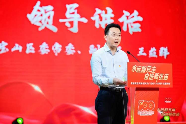 活动上,王益群同志代表区委、区政府向张庙街道广大共产党员致以节日的问候和崇高的敬意!他在讲话中表示,我们党走过的百年征程,有信仰和意志,有目标和方向,有勇气和力量,有我们“从哪里来”的精神密码,有我们“走向何方”的精神路标。百年征程波澜壮阔,百年初心历久弥坚。他指出,追随着党的前进方向,张庙也在不断探索中奋力前行。从始建于上世纪五十年代的上海第一批工人新村,到20世纪90年代形成一个以导入产业工人、安置动迁人员为主的大型居住社区,再到如今坚持“人人有责、人人尽责、人人享有”的新时代人民社区,张庙街道始终秉持以人民为中心的发展思想和“人民城市人民建,人民城市为人民”的重要理念,对标全市最高标准、最好水平,着力提升硬件改善和基础保障,努力探索在理念创新、科技赋能、精细管理、居民获得感上取得更大作为。他指出,当前,宝山奋进“十四五”、全力“北转型”的目标和路径都已明确,希望张庙街道坚持和加强党的全面领导,把党的领导落实到“五个张庙”和“新时代人民社区”建设的各个领域、各个方面、各个环节,主动服务宝山经济社会发展大局,以最坚定、最自觉、最实在的行动庆祝建党100周年,在推进科创宝山的征程中再立新功。