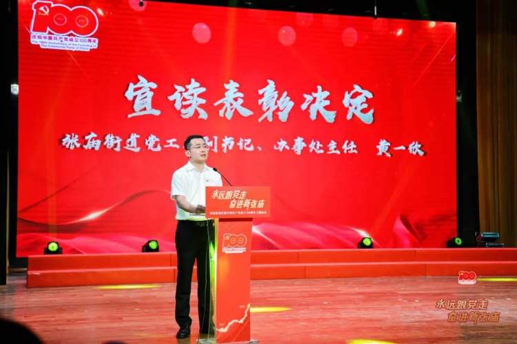 街道党政班子成员分别为获得张庙街道新时代人民社区优秀共产党员称号的100名党员、张庙街道新时代人民社区优秀基层党组织称号的50个党组织颁发奖章和奖牌。