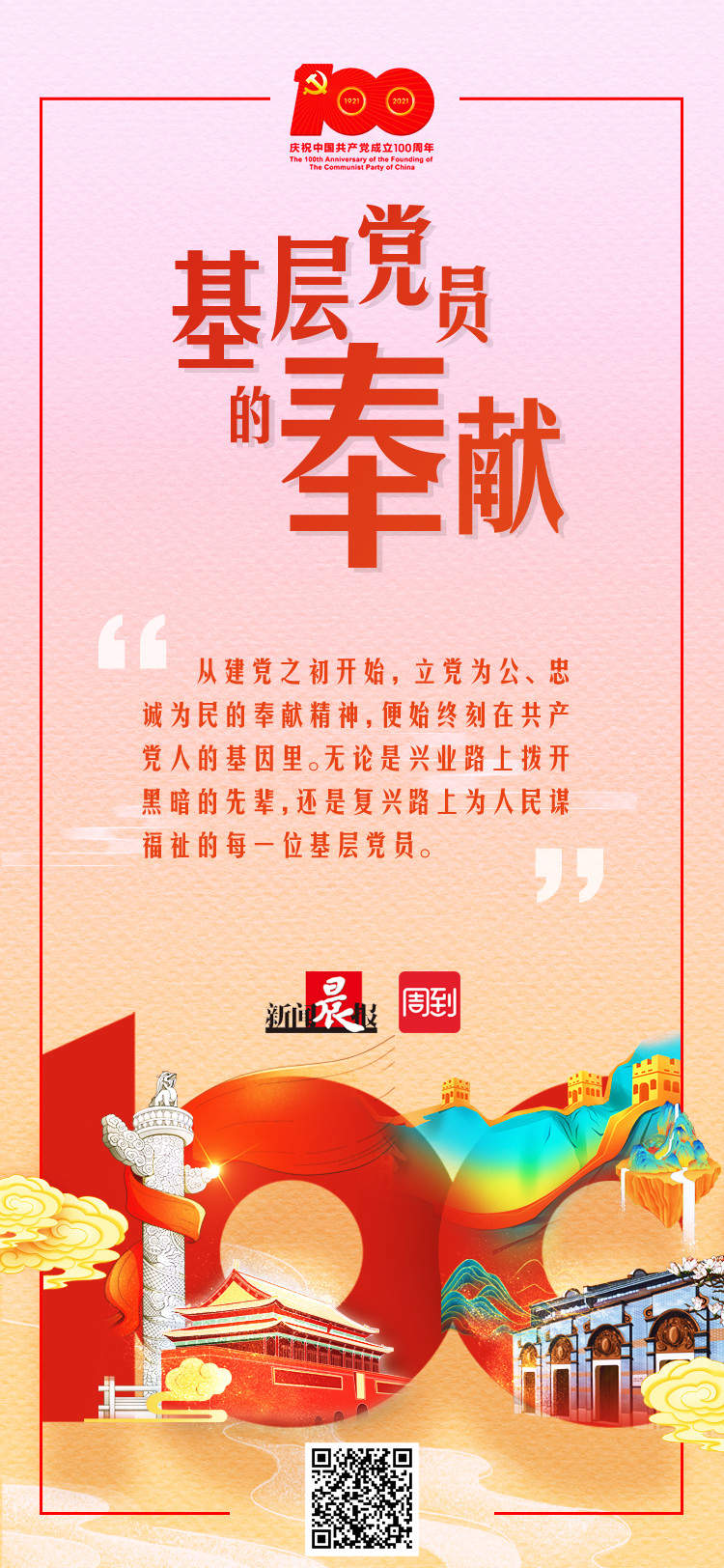 从建党之初开始,立党为公、忠诚为民的奉献精神,便始终刻在共产党人的基因里。无论是兴业路上拨开黑暗的先辈,还是复兴路上为人民谋福祉的每一位基层党员。
