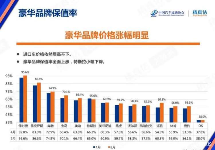 除了保时捷、雷克萨斯和奔驰之外,包括奥迪、英菲尼迪、沃尔沃、路虎等品牌也都实现了保值率增长。