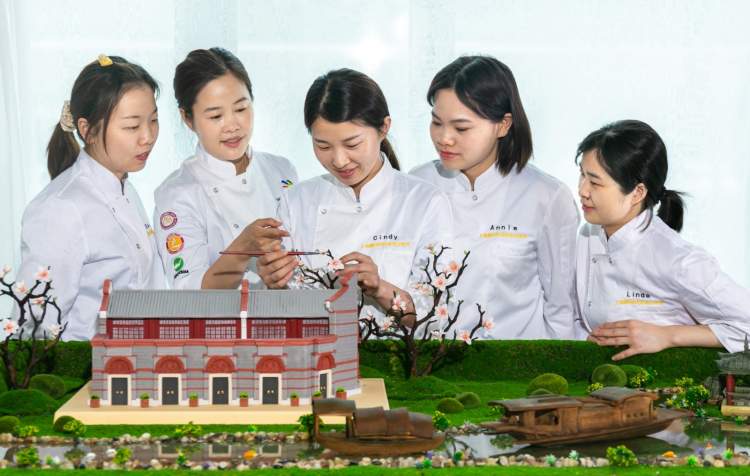 谈到这次制作主题蛋糕的工艺难度,郁慧告诉记者:首先是对历史建筑物结构的了解,要用原材料尽可能还原建筑物和人物的细节;还有一个难点是制作时间正好赶上江南梅雨季节,空气相当潮湿,而糖的天敌就是潮气,所以,如何在制作过程中克服潮湿,又100%还原历史建筑,需要耗费更多的人力和精力。