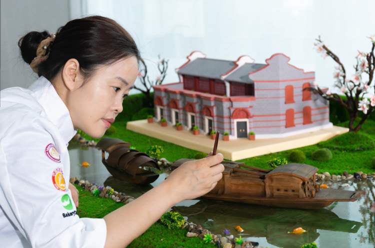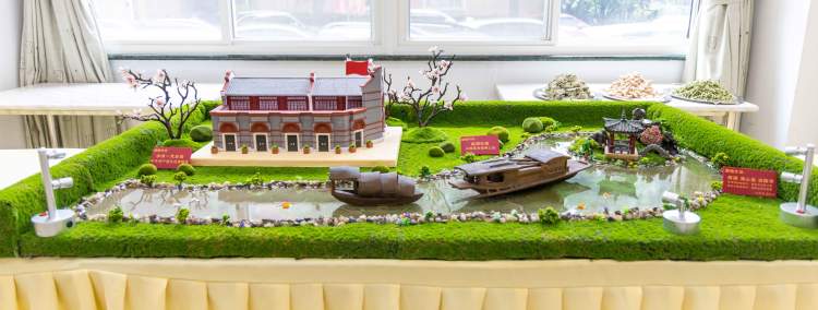 记者找到了这款主题蛋糕作品的设计人——全国技术能手、上海首席技师、“上海工匠”、上海糖师师培训学校有限公司技术总监郁慧。接受记者电话采访时,郁慧正与团队成员在嘉兴南湖革命纪念馆参观学习。面对自己花了很长时间制作的南湖实景和红船的原型,郁慧可谓心潮澎湃。