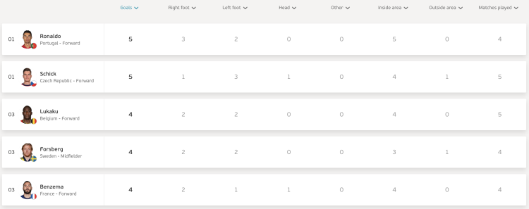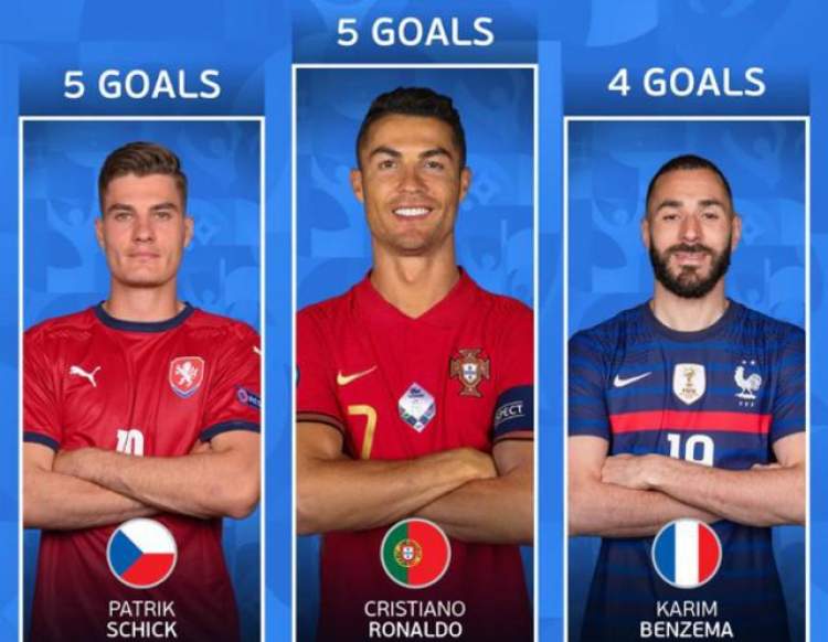 由于希克的欧洲杯之旅已经结束,而比利时的卢卡库、法国的本泽马都已经回家,因此,目前有可能超越C罗的射手仅剩下英格兰的斯特林、凯恩以及丹麦队的多尔贝里,这三人目前均打入3球。