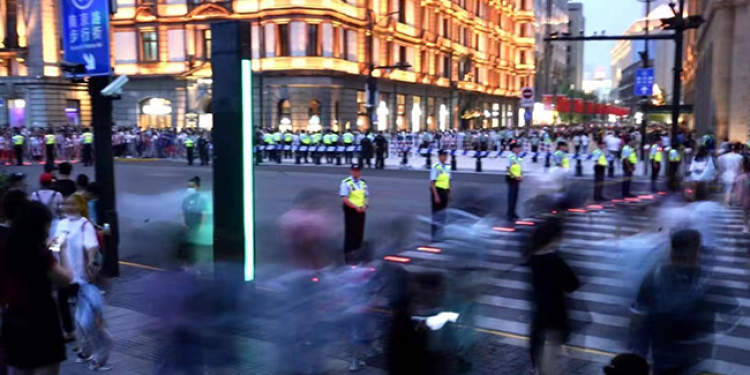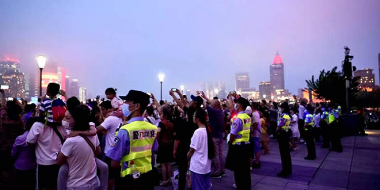 面对超常规大客流管控严峻挑战和现场安全管理复杂形势,上海公安机关精准做好大客流疏导管控,依托警务大客流监测系统,密切关注实时客流,研判动态趋势变化,为现场精准管理提供支撑。针对外滩区域持续大客流情况,坚持“总量控制、动态管控”总原则,灵活采取波次放行、单向循环、分区调度等手段,同步协调落实调整展演场次、轨交跳站、交通管制等措施,确保人群聚而有序、多而不乱。特别是面对7月2日、3日的突发雷雨天气期间客流仍持续保持高位的情况,进一步坚持“科技+人力”做好客流监测研判,科学调配安保力量,合理调整台阶、路口等重点部位守护引导措施,加强广播宣传提醒,确保不发生意外情况。